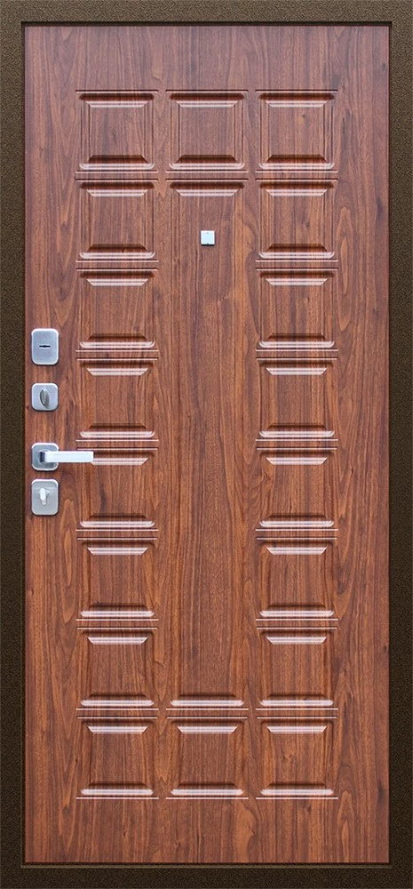 Надежная входная Дверь Спартак Орех темный премиум класса по цене 33 635 руб. Большая толщина стали защитит от проникновения в ваш дом, квартиру или коттедж. Используется очень качественная фурнитура: замки, цилиндры, ручки, защелки. Покрытие и отделка двери изготовлено под внимательным контролем производителя. Дверь имеет долгий срок службы и гарантию.